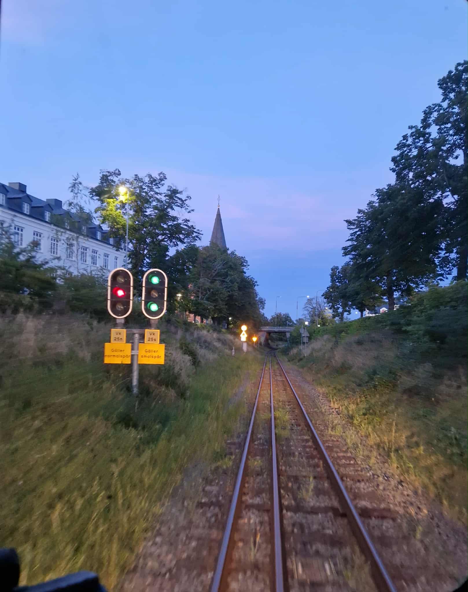 Signalen Vk 25s visar två gröna och vi ska strax rulla in på spår 3 i Västervik.