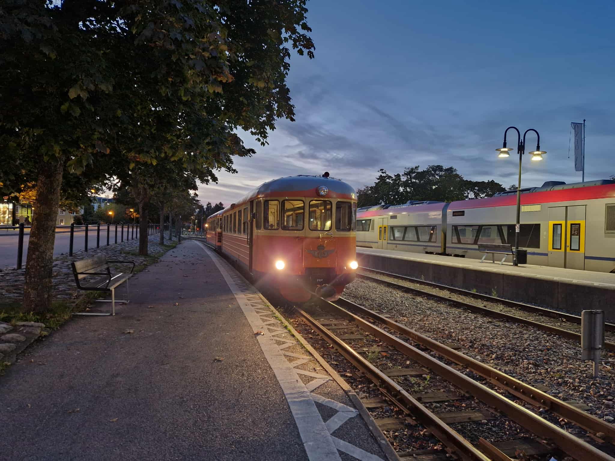 Dags för vagnarna YBo5p 888 och 883 att rulla ner till plattformen i Västervik.