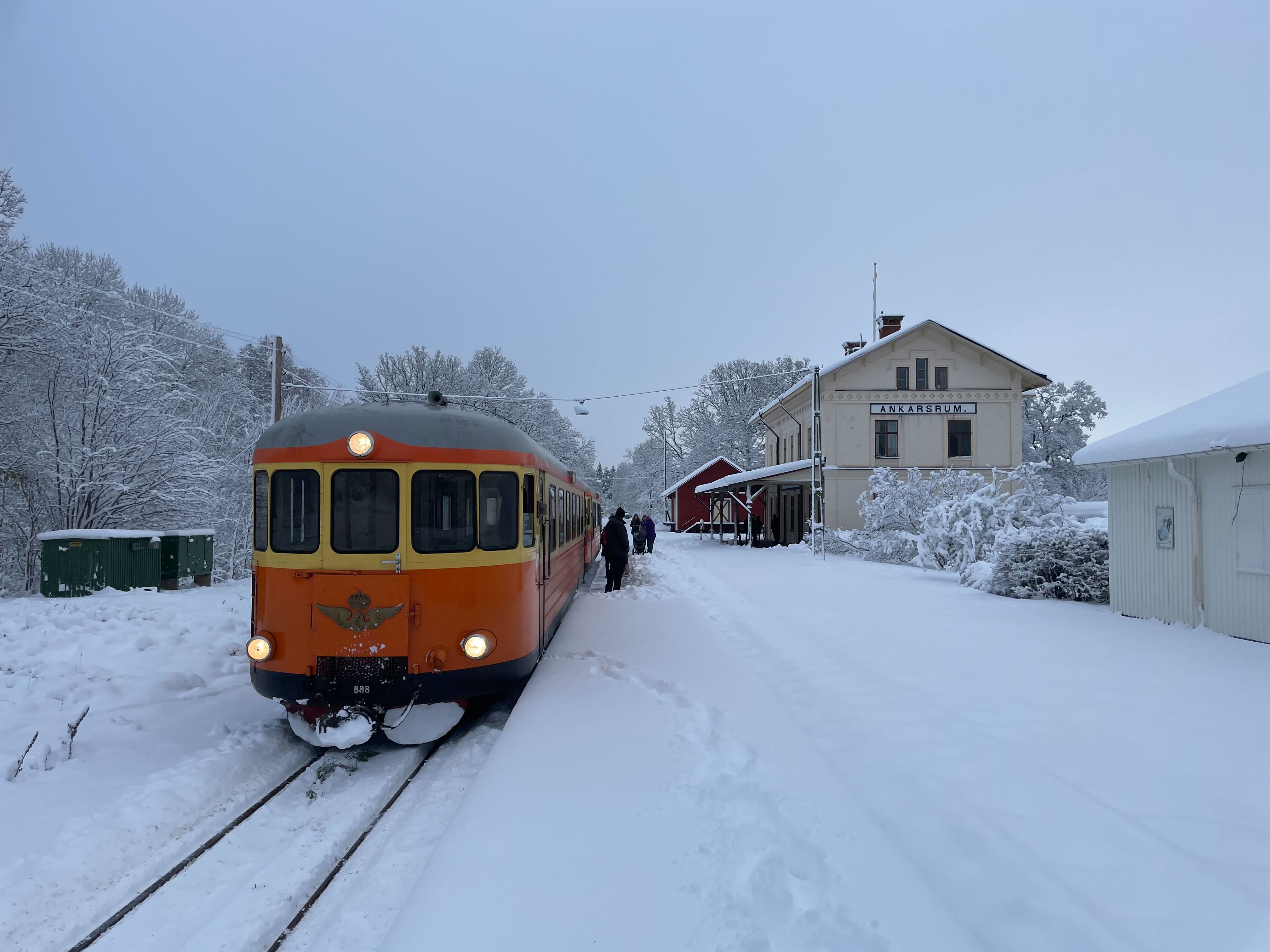 Gör en mysig utflykt med våra 1950-talsrälsbussar och besök julmarknaden i Ankarsrum!