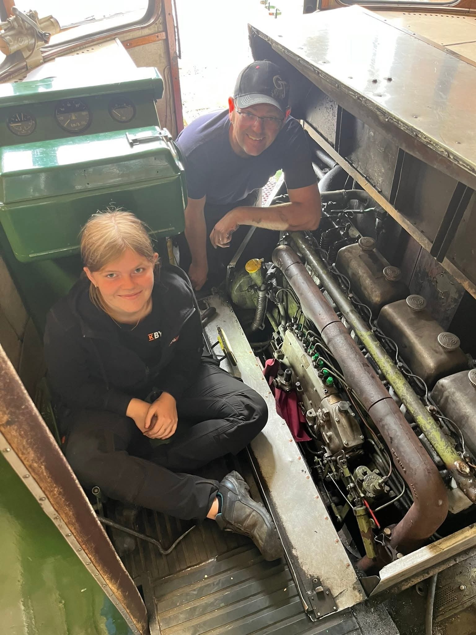 Våra fordon körs mycket under trafiksäsongen och både mindre och större problem kan inträffa. Här det är YBo5p 883 som är inne i verkstan för att Wilma och Gustav ska kunna byta ut en trilskande bränslepump.